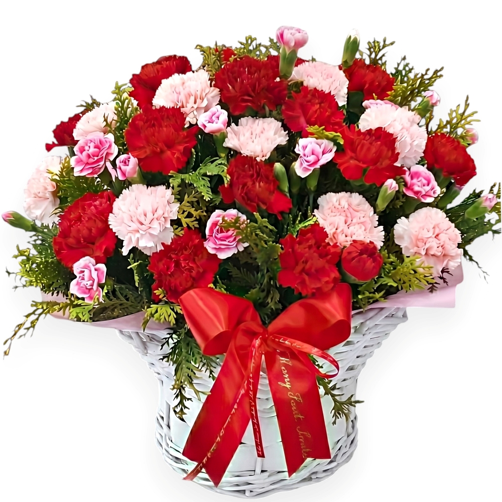 중국산: 동서양난과 관엽식물 일부, 비누꽃과 금장미 소재, 장미, 국화, 카네이션, 대국등과 바구니, 리본등의 부자재
