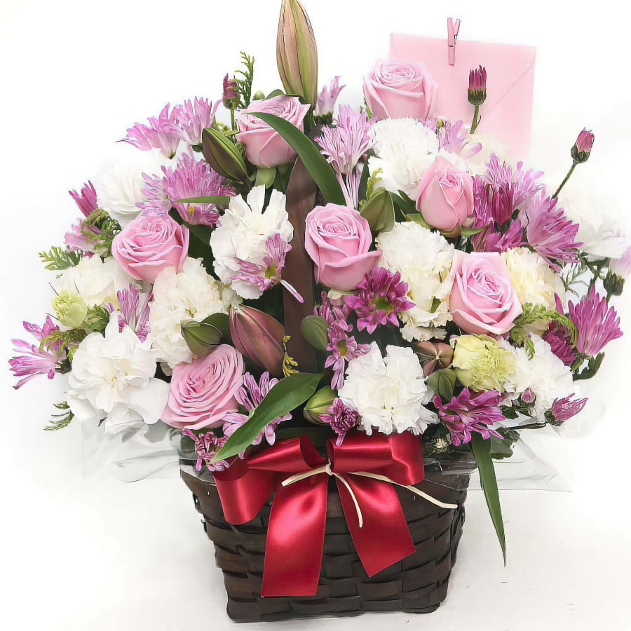 ※ 원산지: 생화 및 관엽은 국내산 또는 수입산(중국,인도등)이며, 리본,바구니등의 부자재는 국내산 또는 중국산