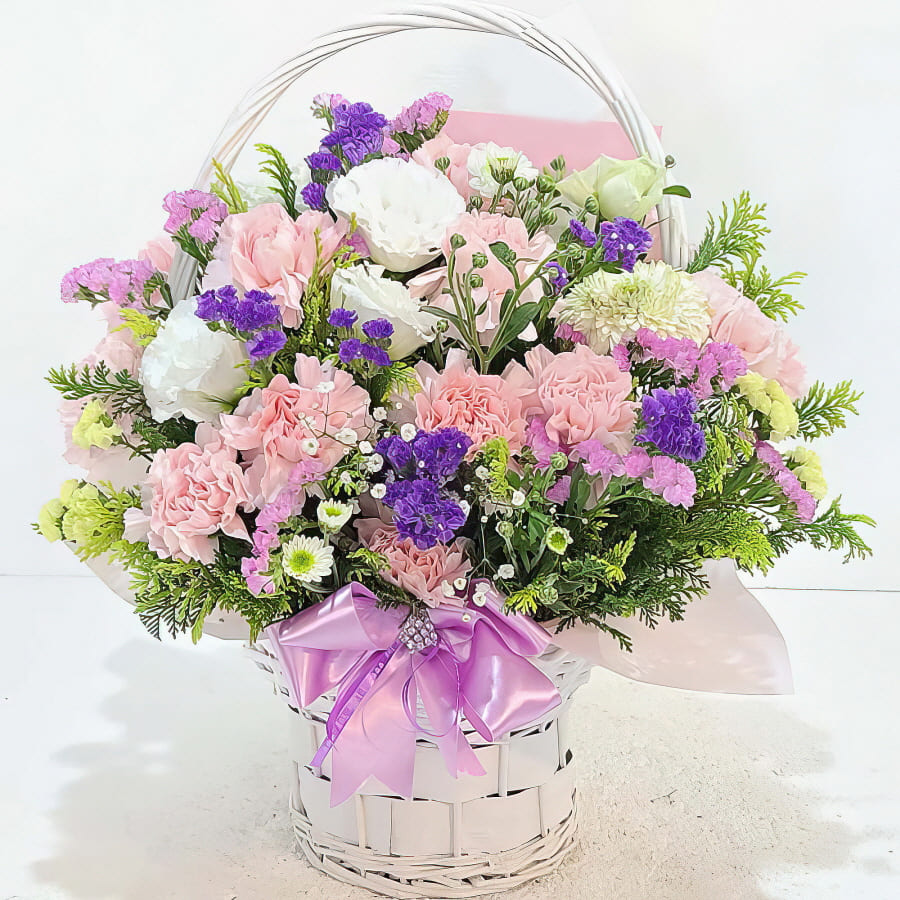 ※ 원산지: 생화 및 관엽은 국내산 또는 수입산(중국,인도등)이며, 리본,바구니등의 부자재는 국내산 또는 중국산