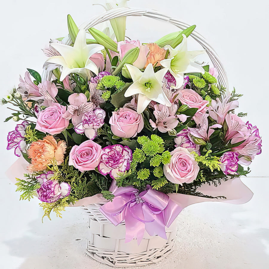 ※ 원산지: 생화 및 관엽은 국내산 또는 수입산(중국,인도등)이며, 리본,바구니등의 부자재는 국내산 또는 중국산