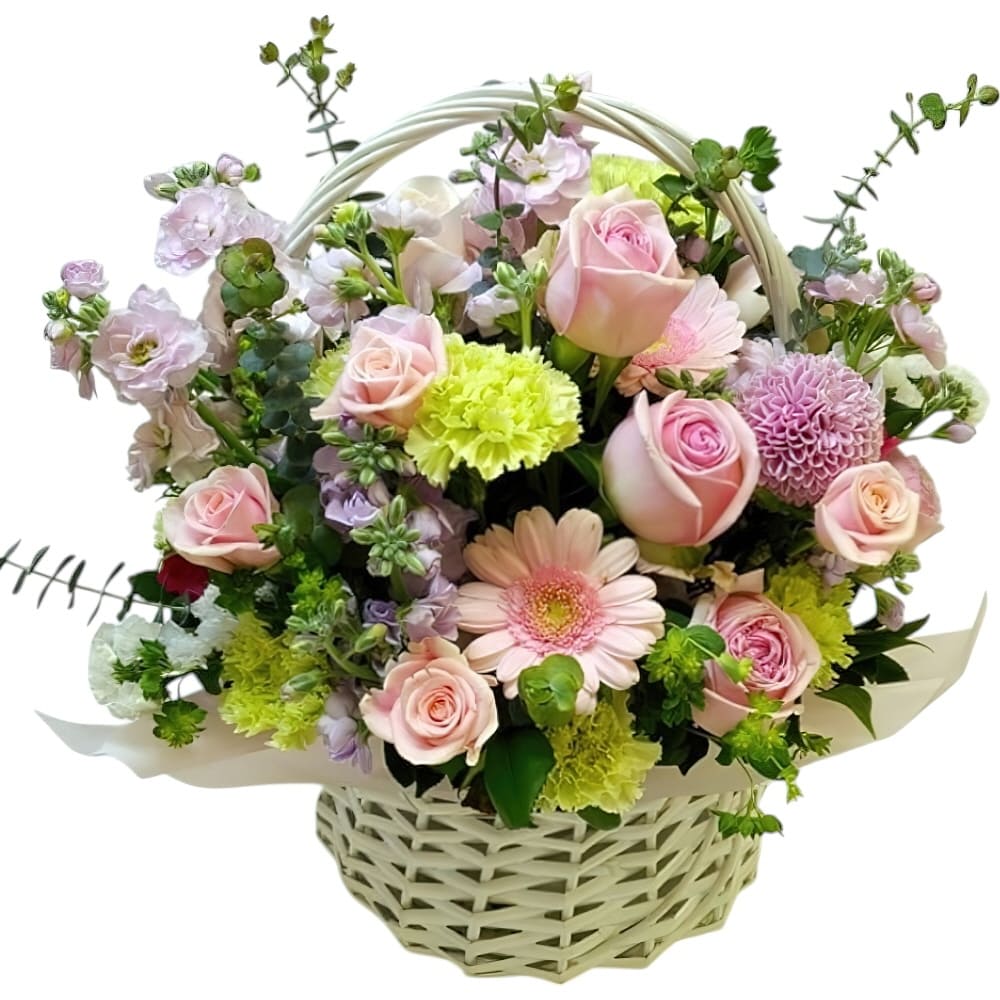 ※ 원산지: 생화 및 관엽은 국내산 또는 수입산(중국,인도등)이며, 리본,바구니등의 부자재는 국내산 또는 중국산